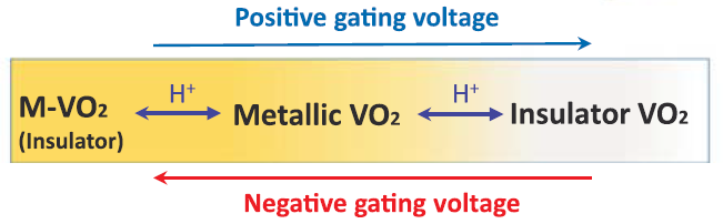 上图:VO2薄膜在电场作用下的可逆三态调控示意图;下图:利用电压调控的电子掺杂驱动的VO2相变智能窗性能大大超越了传统热致相变二氧化钒智能窗