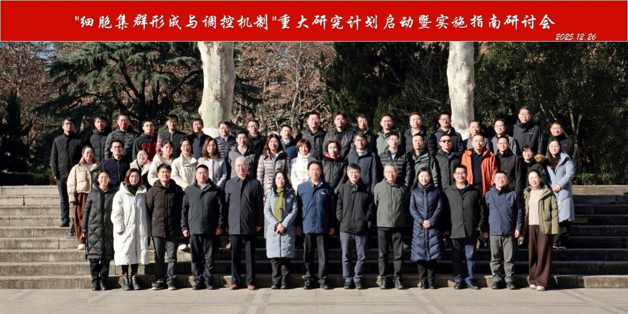 2025年12月26日上午,国家自然科学基金委组织专家在中国科学技术大学举行重大研究计划“细胞集群形成与调控机制”启动会暨2026年度项目指南研讨会。国家自然科学基金委交叉科学部付雪峰副主任、交叉三处杜全生处长、生命科学部生物医学处田伟处长、交叉三处主管陈祥军主任,中国科大校长常进院士,校党委常委、副校长傅尧教授、科研部部长查正军教授,重大研究计划指导专家组姚雪彪教授、张明杰院士、马余强院士、李劲松院士、冯西桥院士、杨莉教授、叶方富研究员、李慧艳研究员,“破译生命的糖质密码”重大研究计划指导专家组组长、生命有机化学国家重点实验室主任俞飚院士,北京中医药大学丁霞副校长,合肥微尺度物质科学国家研究中心陆亚林教授,中国科大科研部副部长沈玮、生命科学学院副院长符传孩教授、无膜细胞器与细胞动力学教育部重点实验室副主任刘行教授等参加了启动会。重大研究计划管理组、秘书组和相关单位代表100余人参加会议。会议开幕式由副校长傅尧教授主持。