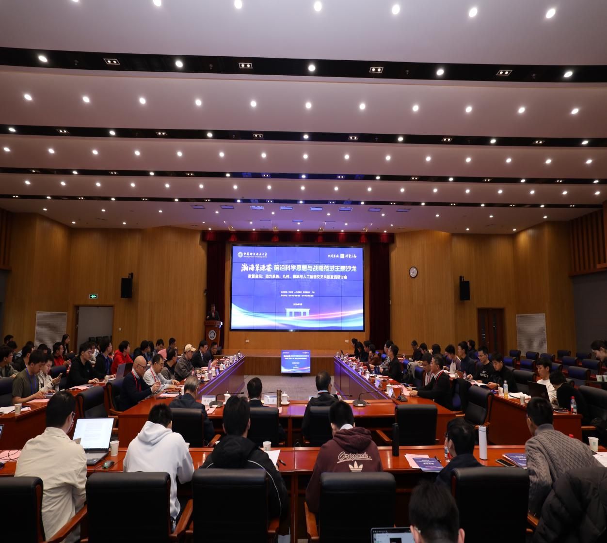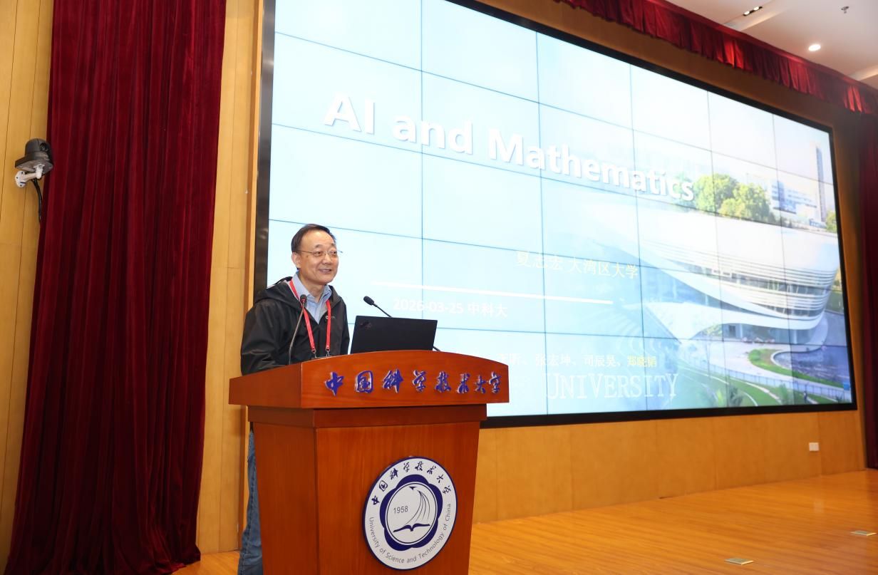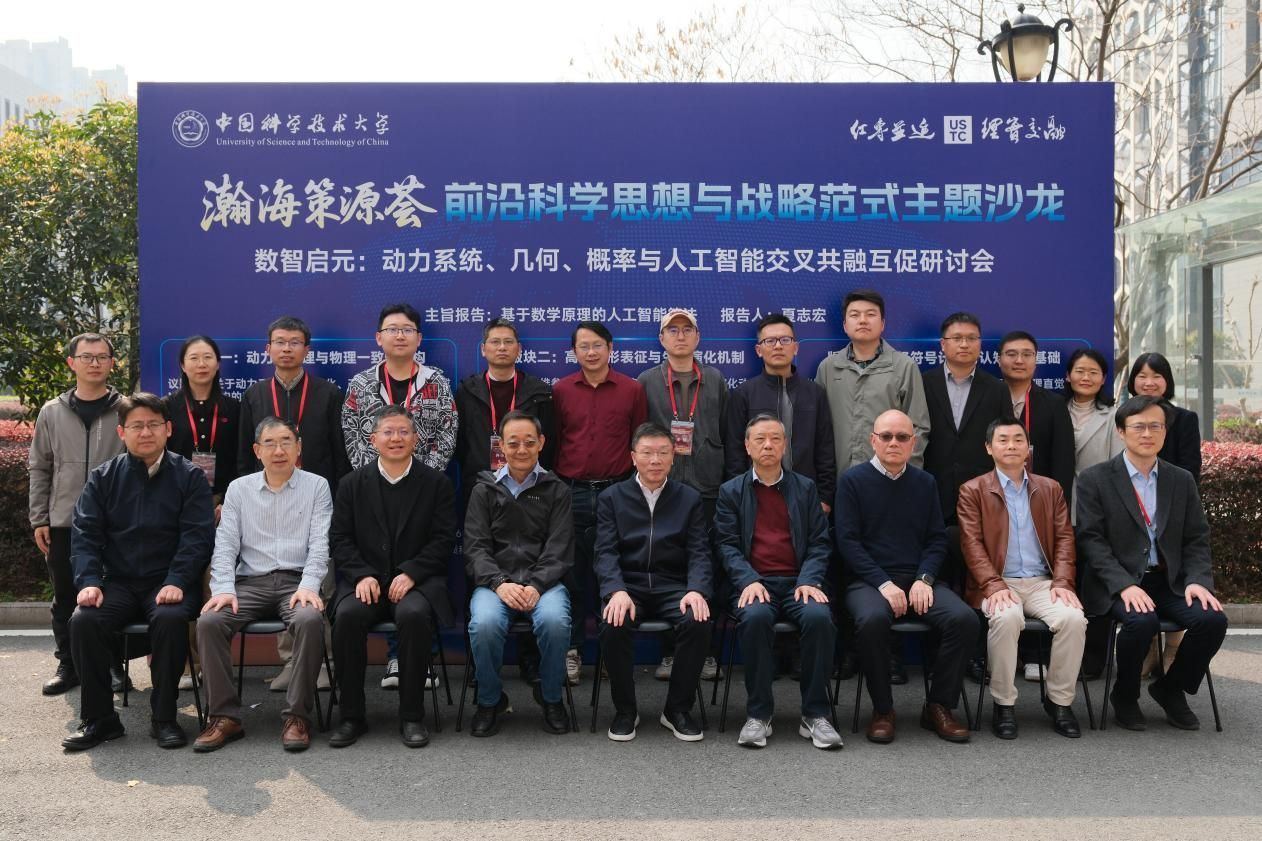 夏志宏作题为《基于数学原理的人工智能算法》的主旨报告。在交流研讨环节,与会专家与现场学生思想观察员围绕“动力学机理与物理一致性架构”“高维流形表征与生成演化机制”“神经符号计算与认知推理基础”三大前沿痛点问题展开深入讨论,实现学术思想的“代际传递”与跨界耦合。